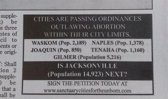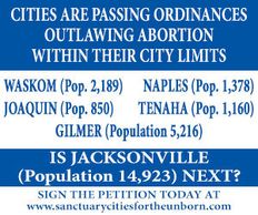 91 U.S. CITIES AND 16 COUNTIES HAVE PASSED ORDINANCES OUTLAWING ABORTION*
